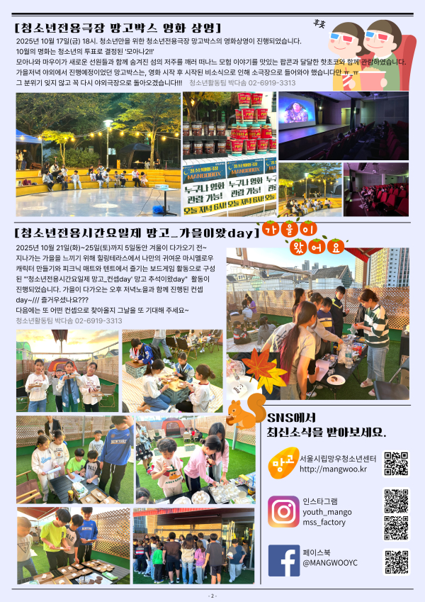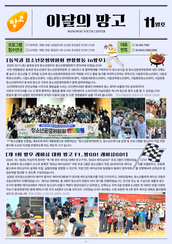 목록 2025년 '이달의 망고' 11월호 발간 페이지 정보 작성자 mangwoo 댓글 0건 조회 270회 작성일 25-11-05 17:56 본문 . 이전글2025년 '이달의 망고' 12월호 발간 25.12.17 다음글2025 겨울학기(12월~2월) 프로그램지(PDF참고) 25.11.04 댓글 0 댓글목록 등록된 댓글이 없습니다. 목록