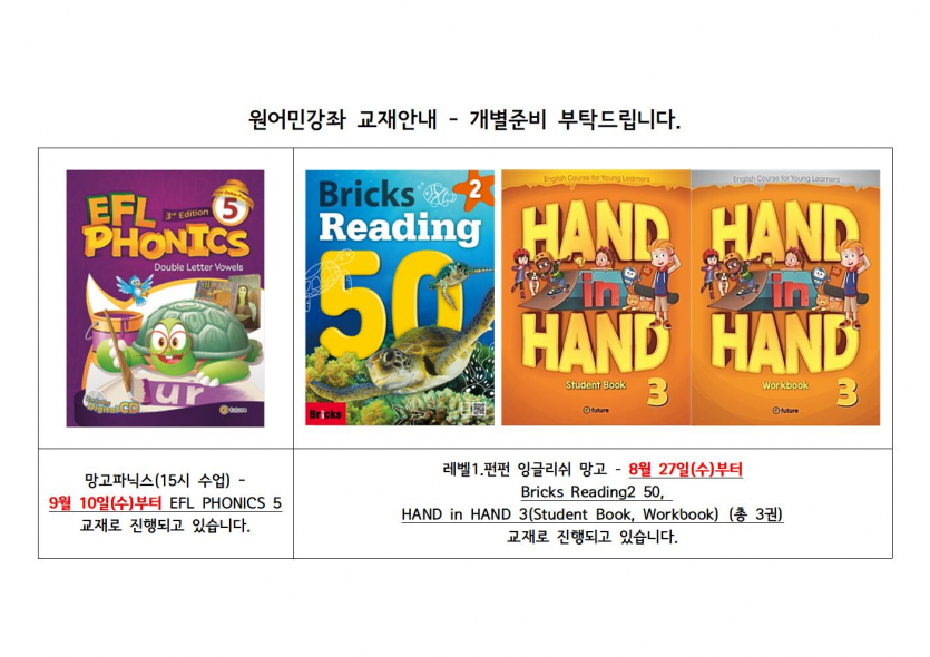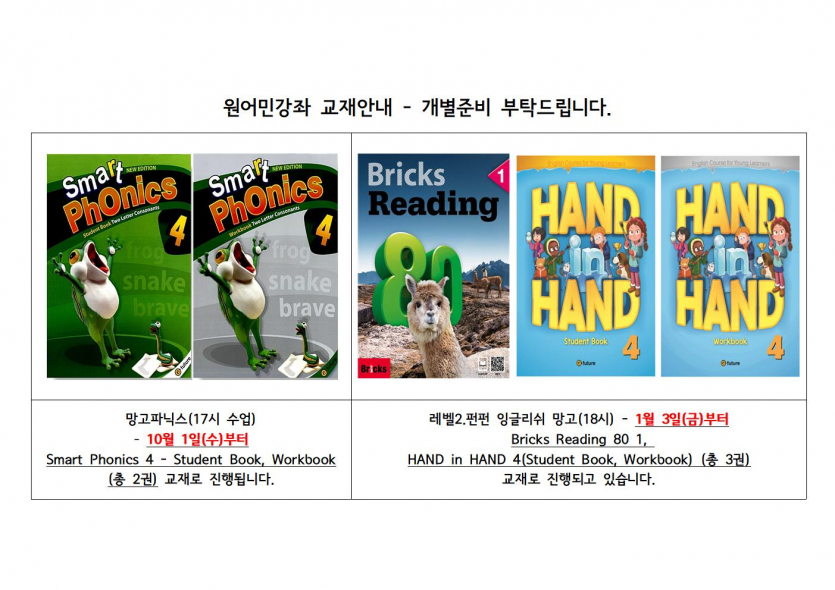 목록 [체육·문화] [교육문화]원어민강좌 교재안내(10월) 페이지 정보 작성자 시립망우청소년센터 댓글 0건 조회 282회 작성일 2025-09-30 본문 . 추천0 이전글(긴급)서울시립망우청소년센터 방과후아카데미 실내체육(음악줄넘기) 강사 채용 공고 25.10.15 다음글시립망우청소년센터 10월 휴관 안내 25.09.29 댓글 0 댓글목록 등록된 댓글이 없습니다. 목록