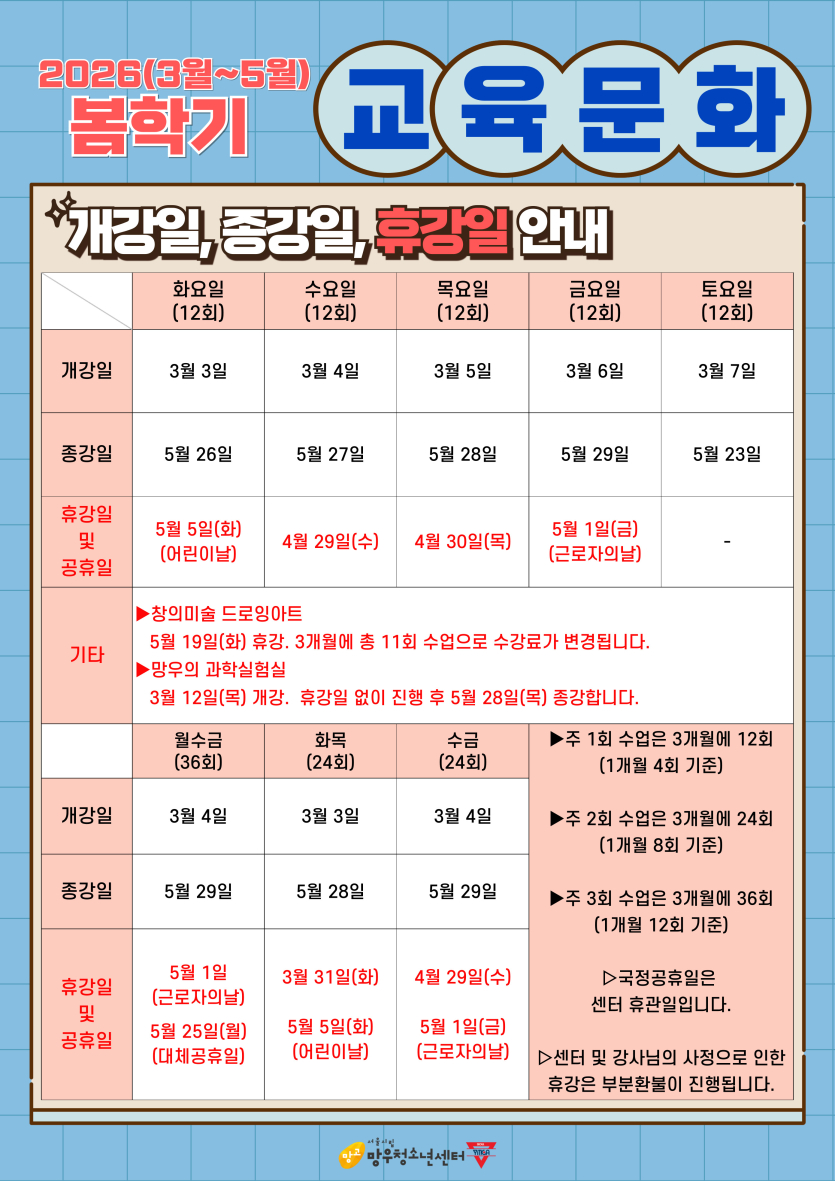 [체육·문화] [교육문화]봄학기 안내사항(2월 2일 수정)