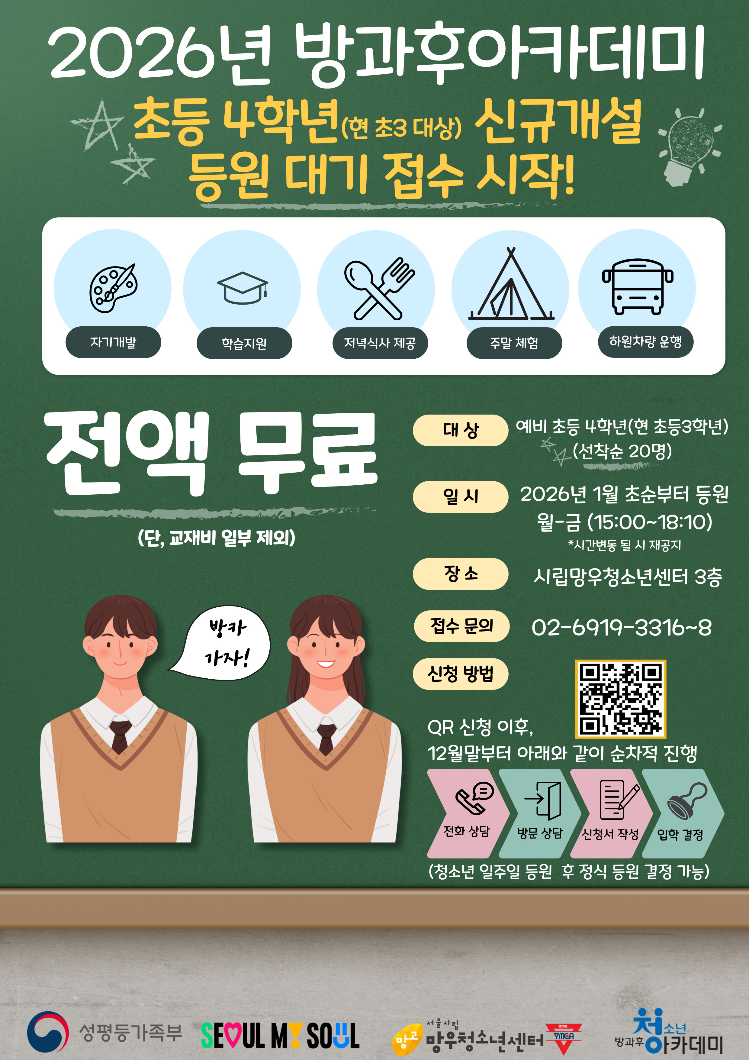 방과후아카데미 - '초등4학년' 신규개설 등원 대기 모집